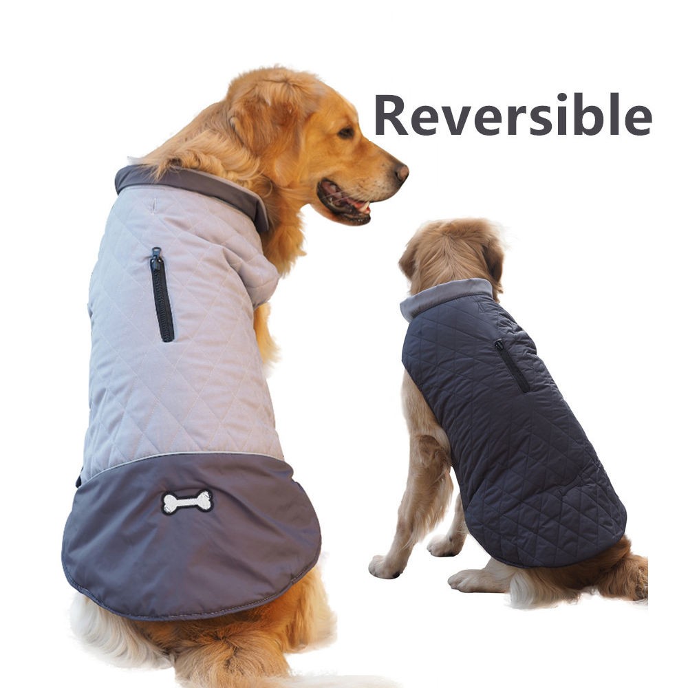Waterproof Windproof Reversible Dog Winter Coat – Lightweight Warm Down Jacket with Reflective Vest, Cold Weather Apparel for Small, Medium & Large Dogs