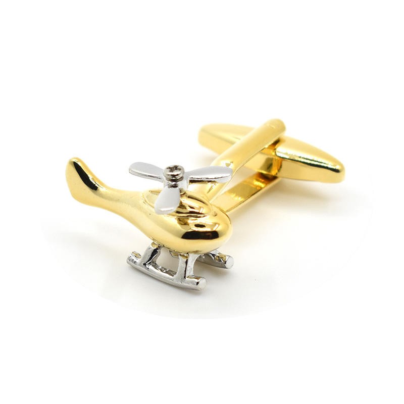 Wholesale 3D Helicopter Brass Cufflinks & French Tie Clip Set Men’s Aviation Wedding Tuxedo Accessory Trendy Suit Jewelry for Parties & Formal Wear