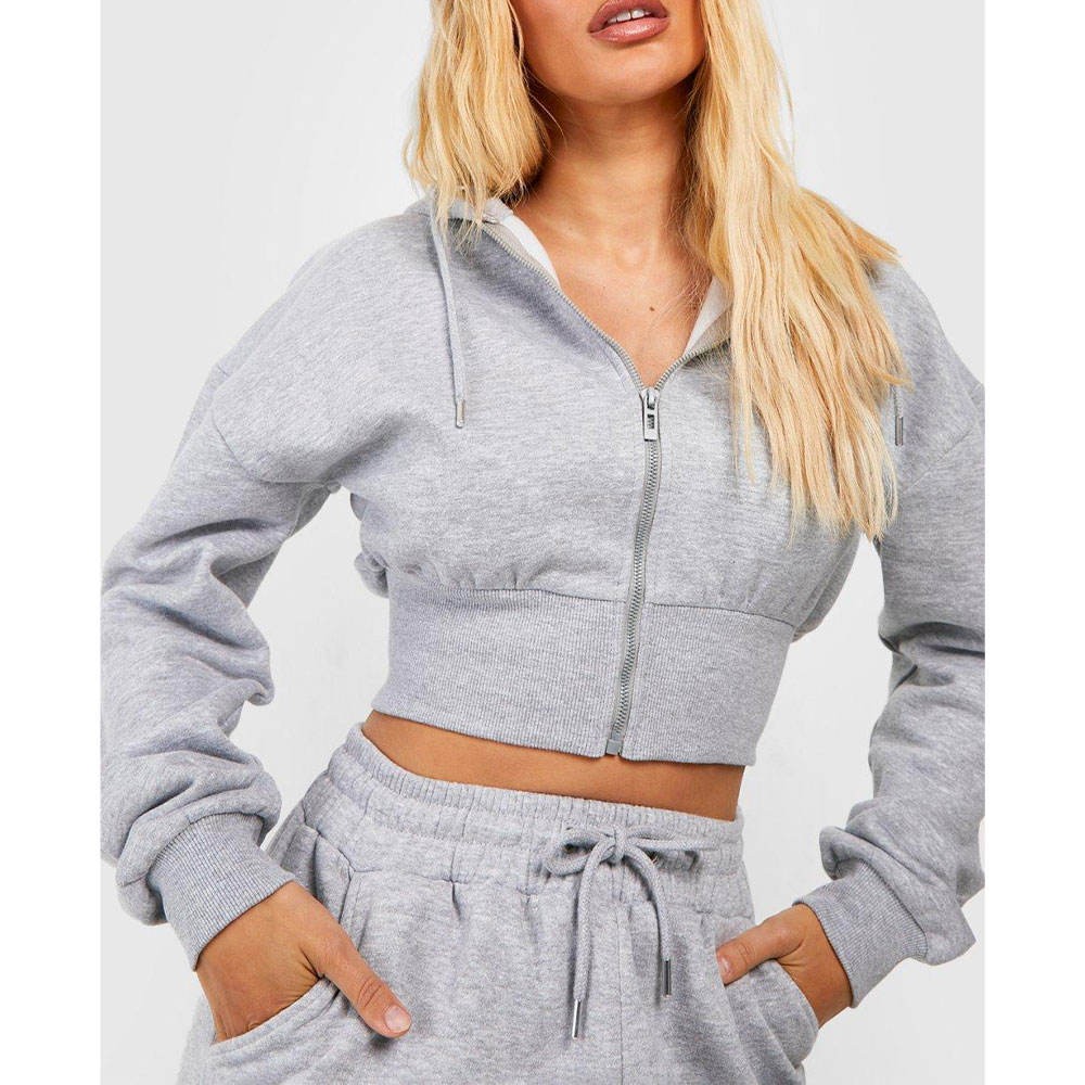 Women's Cotton Fleece Crop Hoodie Casual Fashion Drop Shoulder Long Sleeve Zip Up Sweatshirt Premium Streetwear